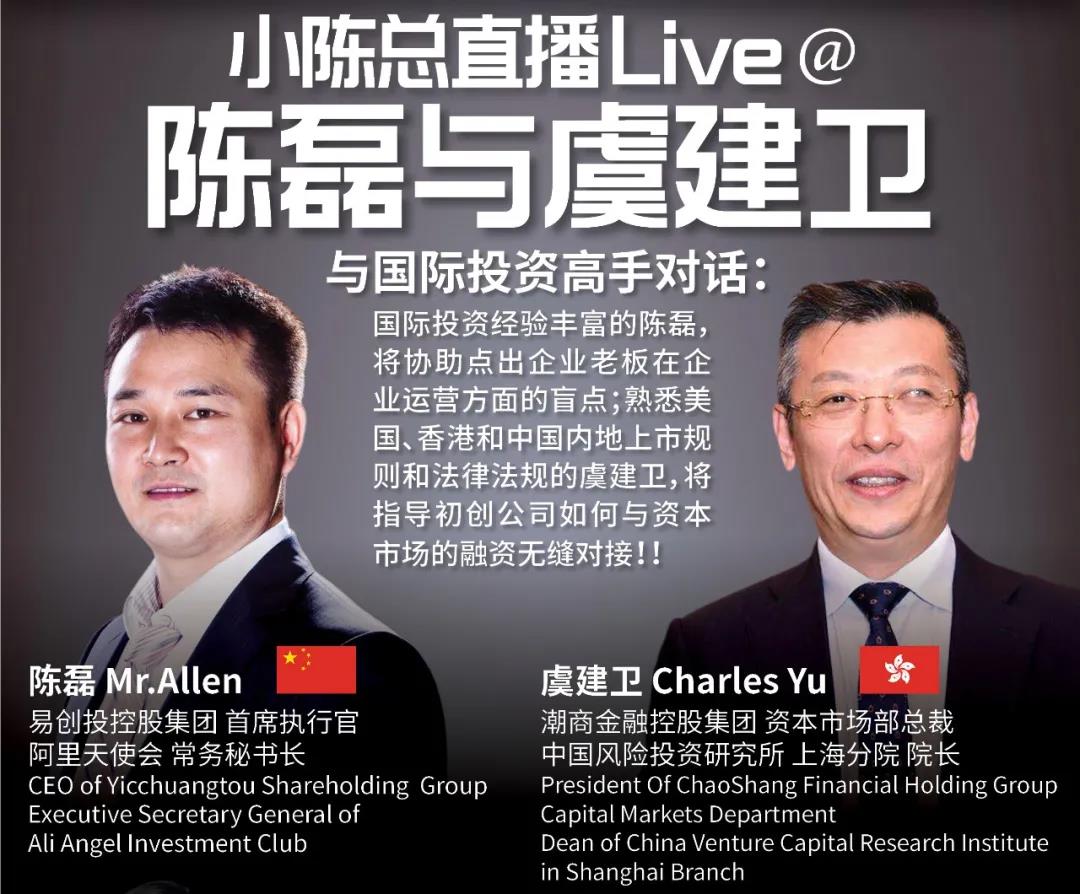 《大橙直播》九月特辑第003、004集我们非常荣幸邀请到投资、项目管理经验丰富熟悉美国、香港、和中国内地上市规则和法律法规的潮商金融控股集团资本市场部总裁、中国风险投资研究院上海分院院长 Charles Yu 虞建卫以及创业投资经验丰富的VC大咖易创投控股有限公司首席执行官、阿里天使会常务秘书长陈磊 Mr.Allen 作为我们的大橙直播嘉宾。