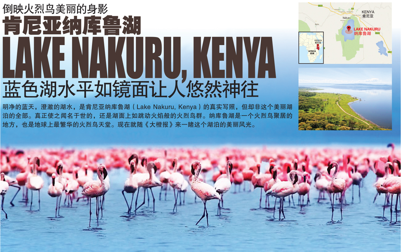 纳库鲁湖坐落在非洲肯尼亚裂谷省纳库鲁县(Nakulu District, Rift Valley Province, Kenya, Africa),面积188平方千米,现在已建成国家公园。这里是世界上最大的鸟类栖息地,园中约有450种禽鸟,最著名的是火烈鸟。在这一带生活的火烈鸟最多时约有200多万只,占世界火烈鸟总数的1/3。