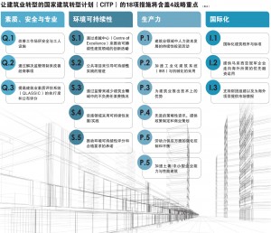 2015年所提呈的“第十一马来西计划”将纳入国家建筑转型计划(CITP)。在这计划下,政府目标是每年的建筑业的成长率为10%,并期望在2020年时减少高达40%的排碳量。国家建筑转型计划将含4大战略性重点,即生产力、环境可持续性、国际化及素质、安全与专业(见表五)。
