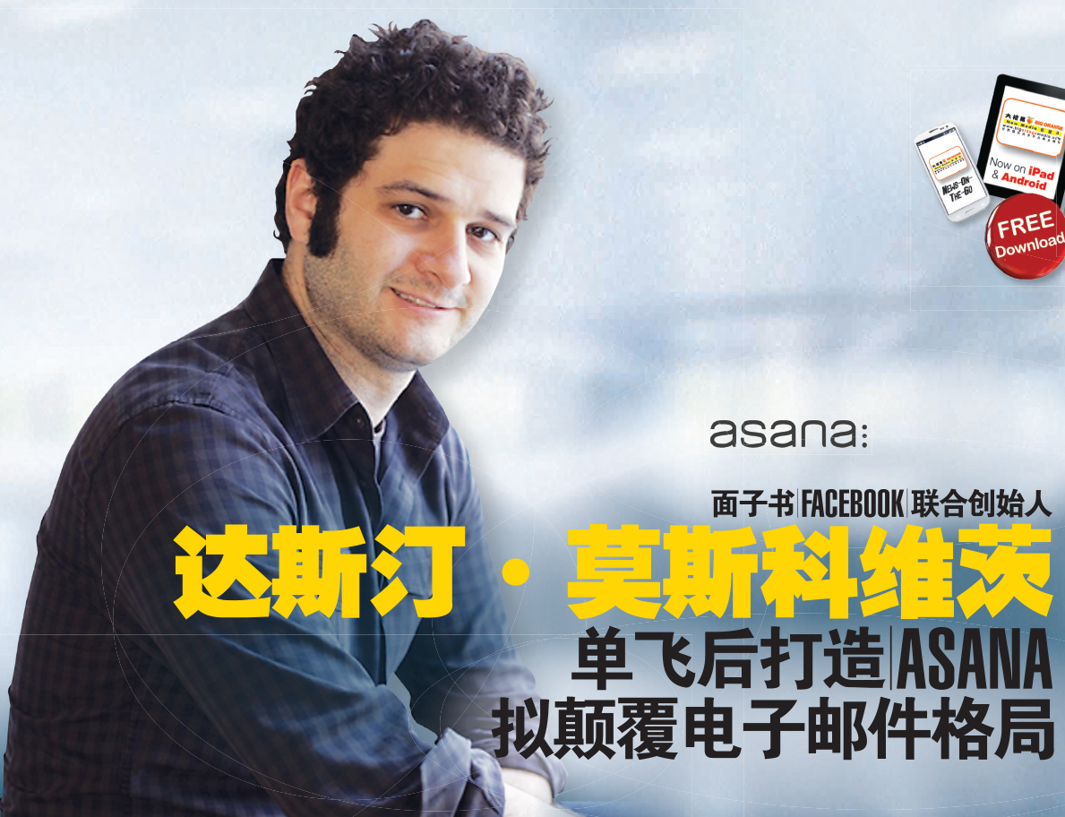 2008年,莫斯科维茨辞去面子书的工作,决定单飞开拓自己的事业。他与面子书前技术主管–贾斯丁·罗森斯坦(Justin Rosenstein)联合创立了Asana,致力于向人们提供更好的项目协作,团队沟通平台。