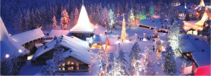 圣诞老人村(Santa Claus Village)位于芬兰的拉普兰地区罗凡涅米(Rovaniemi,Lapland,Finland)以北8公里处的北极圈上,地图上标记有66°32’35”字样的白色标线就是北极圈的纬度。每年,源源不断的游客从世界各地涌向这里,以一睹圣诞老人的风采为快。