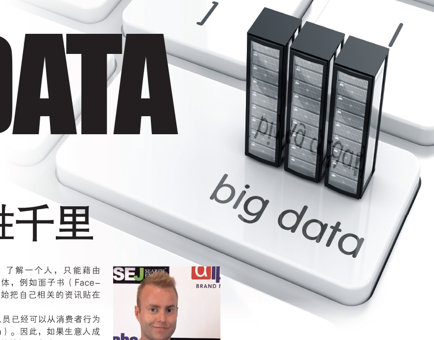 由于有了社群媒体之后,现在从事网路行销的人员已经可以从消费者行为中,获得相当多的资讯,也就是所谓的大数据(Big Data)。因此,如果生意人成功掌握大数据的话,那么,他们在生意决策方面将可以运筹帷幄,决胜千里。