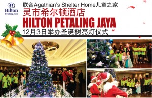 灵市希尔顿酒店(Hilton Petaling Jaya)于2015年12月3日,与来自于Agathian’s Shelter Home儿童之家的20位孩童联手举办了一项圣诞树亮灯仪式。在温馨的佳节里其中一项有意义的事情,就是敞开胸怀帮助不幸的群体。为了向年幼与年老一辈带来欢乐,我们继续尽力回馈需要帮助的一群。