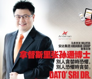 正当市场人士普遍看淡2016年马来西亚(Malaysia)房地产展望的时候,安达集团(Andaman Group)董事经理拿督斯里张孙通博士(Dato’ Sri Dr. Vincent Tiew)却准备在2016年大展拳脚,拟定了5年让公司上市、一年内推介两个新盘以及一年内取得10亿令吉销售额等重大计划。为何拿督斯里张孙通博士对2016年展望充满信心呢?且看他接受《大橙报》专访时所真诚地分享的看法。