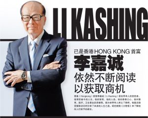 作为小学校长的儿子,李嘉诚虽为了躲避日军侵略而年少辍学,但他从未停止读书。在战争期间,他曾以柴火价买了一堆教材。年轻时,当他开始生产塑料的时候,为了加深对行业的了解,他认真地阅读了美国(United States)行业月刊《当代塑料》。如今,他会阅读与生活和业务相关的书籍。