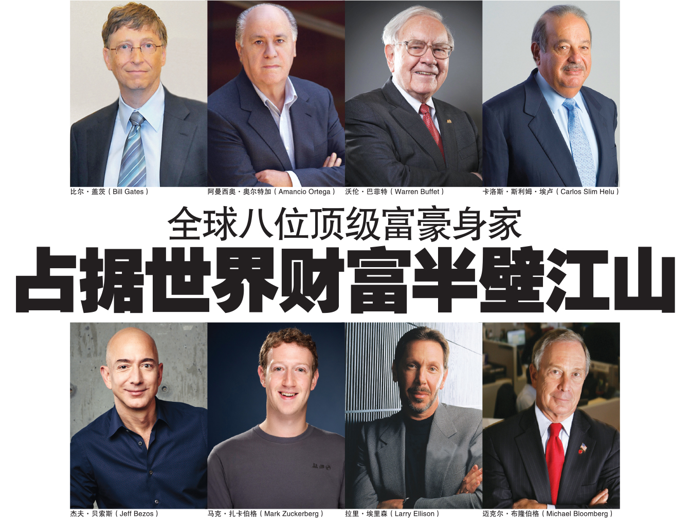 乐施会(Oxfam)最近发布的分析报告显示,8位顶级富豪拥有世界一半人口的财富总和, 累计共达3498亿英镑,与世界上最穷困的36亿人口拥有的财富总和相当。分析报告说,“这种财富高度集中的状况与终止全球贫困的努力背道而驰。”并称“支付给英国(United Kingdom)高管的薪酬正处于失控状态。”