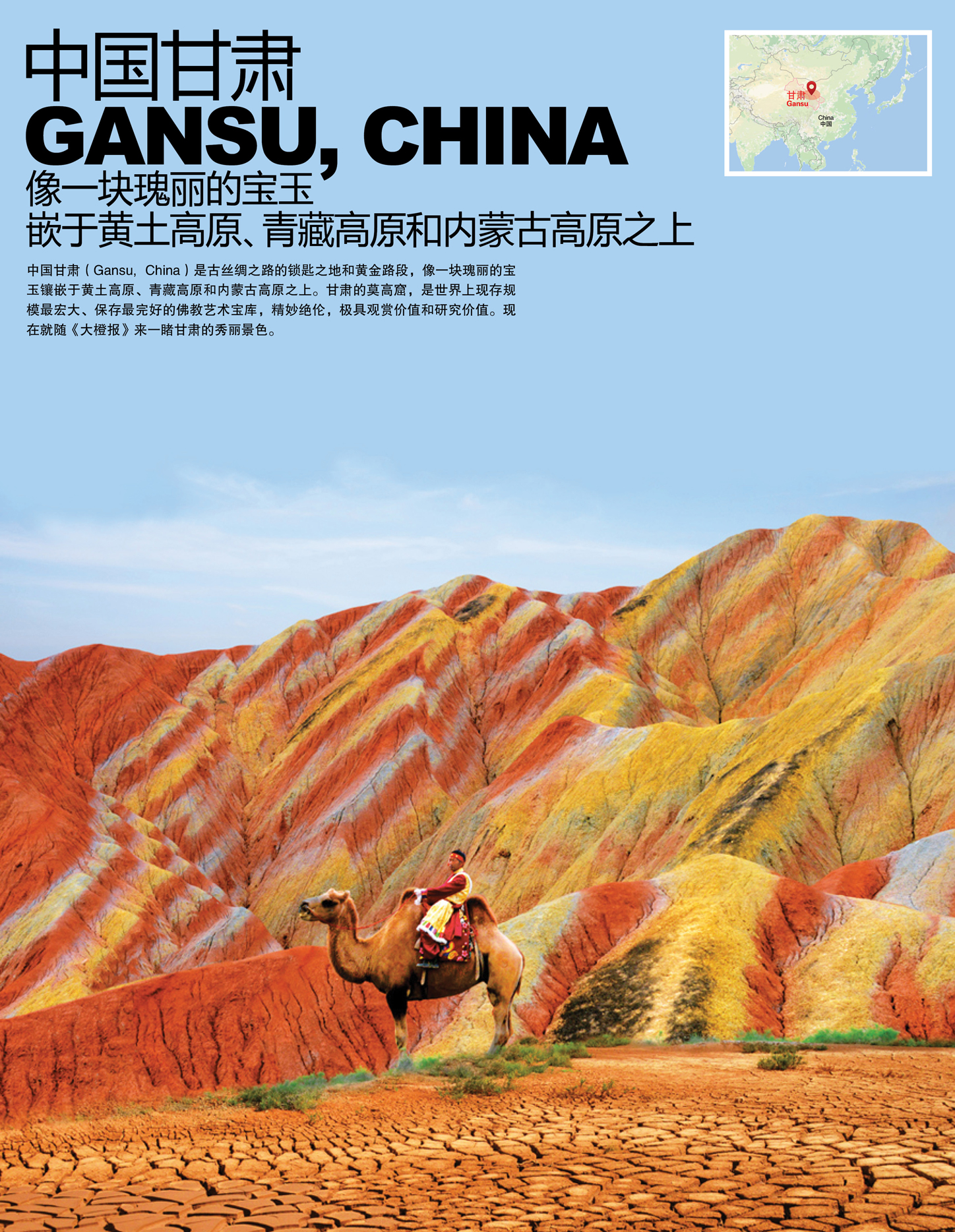 甘肃是古丝绸之路的锁匙之地和黄金路段,像一块瑰丽的宝玉镶嵌于黄土高原、青藏高原和内蒙古高原之上。