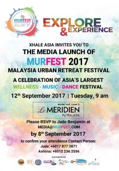 马来西亚都市怡疗节(Malaysia’s Urban Retreat Festival,MURFEST)将会在2017年11月3日起至5日,在马来西亚(Malaysia)的Le Meridien Putrajaya隆重登场。