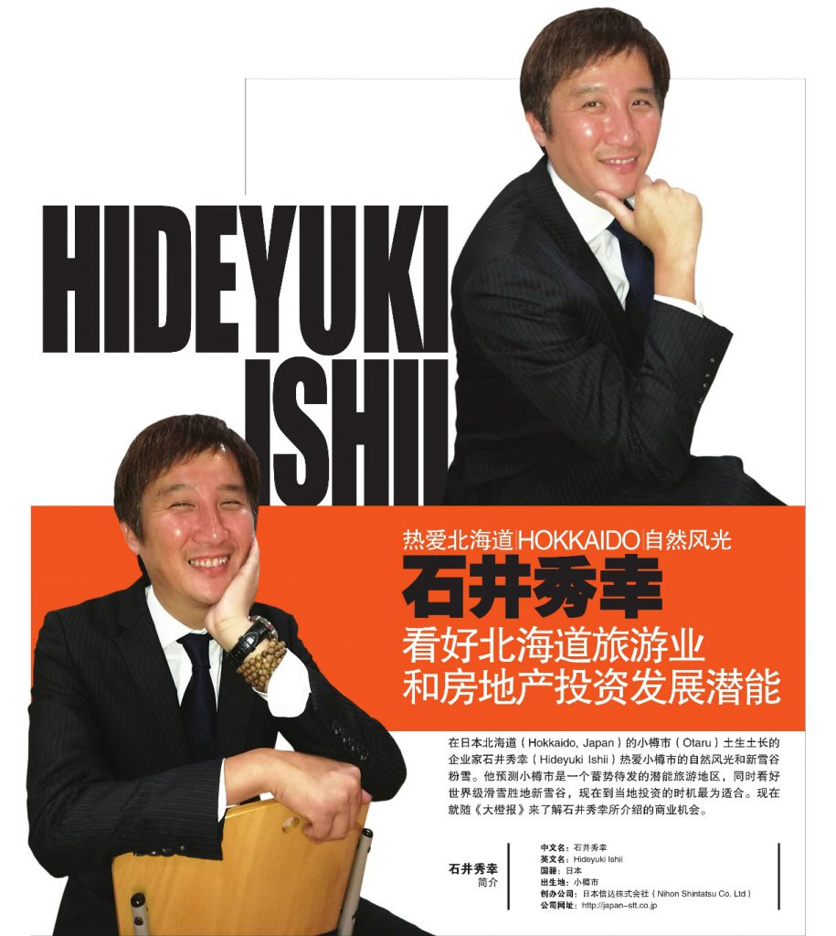 石井秀幸是日本信达株式会社(Nihon Shintatsu Co. Ltd)的总裁兼创始人(CEO & Founder),公司的主要业务为发展旅游房地产,并且在销售这些房地产之后,也协助业主管理有关的房地产。