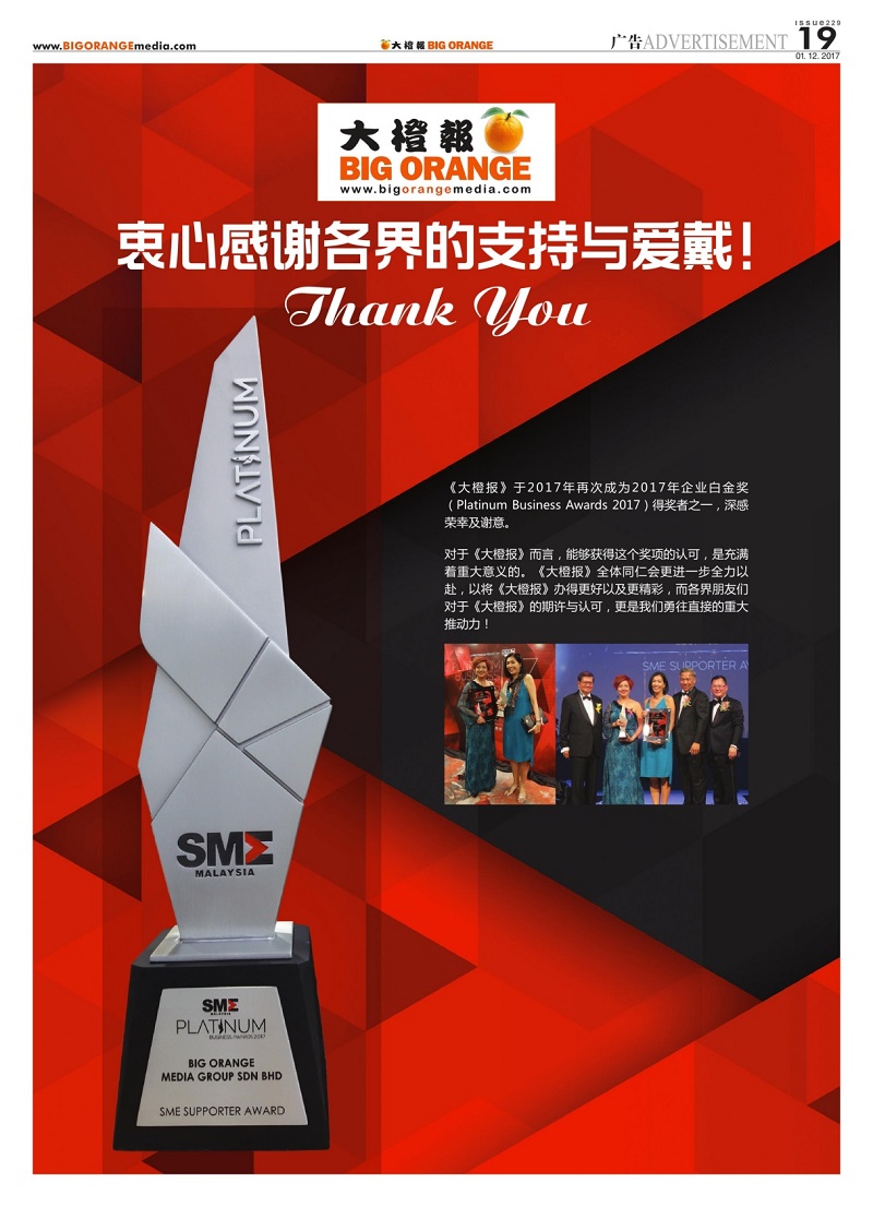 由马来西亚中小企业公会(SMEAM)举办的2017年企业白金奖(Platinum Business Awards 2017)于2017年11月23日在位于马来西亚雪兰莪州(Selangor,Malaysia)的双威金字塔会议中心(Sunway Pyramid Convention Centre)成功举行。