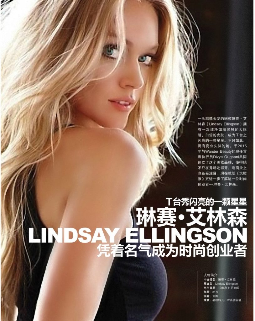 一头飘逸金发的嫩模琳赛·艾林森(Lindsay Ellingson)拥有一双纯净如精灵般的大眼睛,白皙的皮肤,成为T台上闪亮的一颗星星。不只如此,拥有商业头脑的她,于2015年与Wander Beauty 的现任首席执行员Divya Gugnani共同创立了这个美妆品牌,使得她不只在秀场吃得开,连商业上也备受注目。现在就随《大橙报》更进一步了解这一位时尚创业者–琳赛·艾林森。
