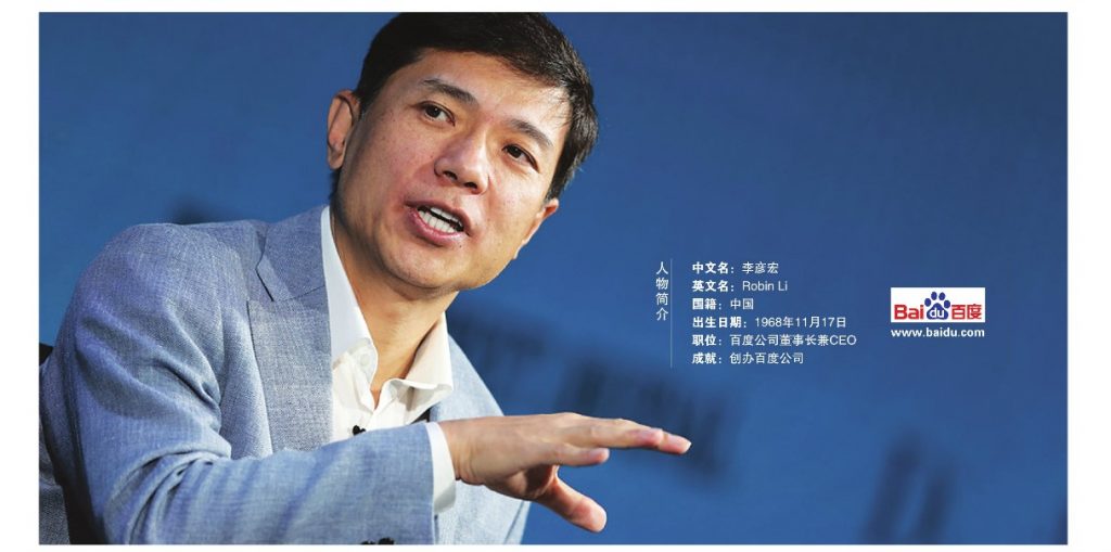 中国(China)公司百度(Biadu)董事长兼首席执行员李彦宏是备受世界注目的资讯科技(IT)公司领导人,在2000年创立的百度已成为仅次于谷歌(Google)的搜索引擎公司,在中国占有80%的市场份额使其成为全球第四大网站。如今两次成为世界权威杂志的封面,风头盖过许多科技巨头。现在就随《大橙报》,近距离了解这位搜索引擎巨擘的成长故事。