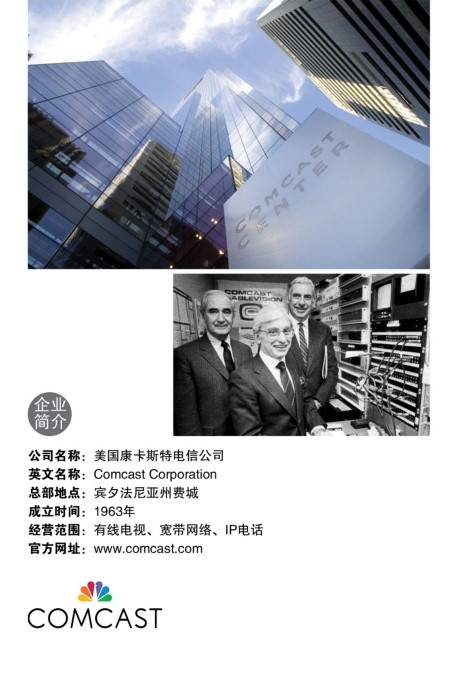 康卡斯特(Comcast)是美国(United States)一家主要有线电视,宽带网络以及IP电话服务供应商,总部位于宾夕法尼亚州的费城(Philadelphia,Pennsylvania),是美国最大有线电视公司。康卡斯特亦是美国第二大互联网服务供应商,仅次于AT&T。现在就随《大橙报》了解康卡斯特的成功之道。