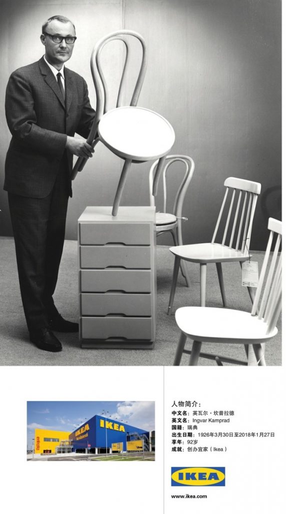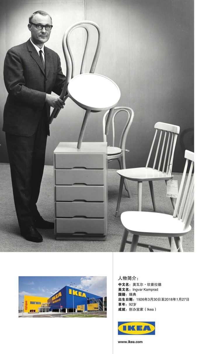 2018年1月27日,92岁的宜家集团创始人英瓦尔‧坎普拉德(Ingvar Kamprad)在睡梦中安详辞世。