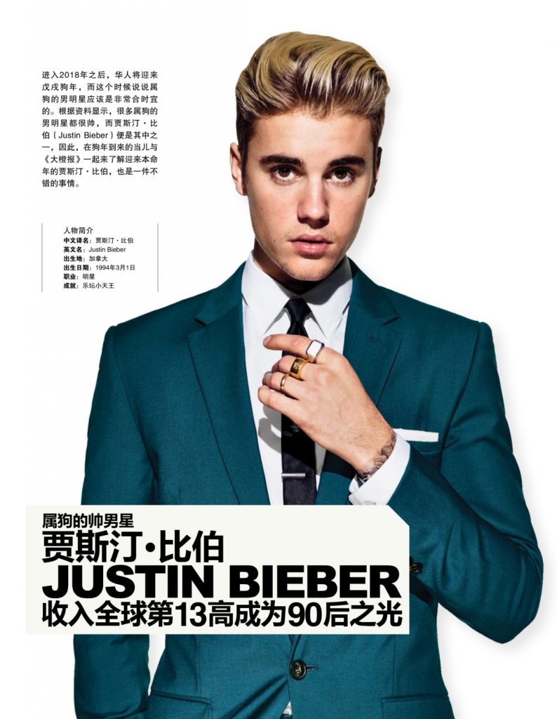 进入2018年之后,华人将迎来戊戌狗年,而这个时候说说属狗的男明星应该是非常合时宜的。根据资料显示,很多属狗的男明星都很帅,而贾斯汀·比伯(Justin Bieber)便是其中之一,因此,在狗年到来的当儿与《大橙报》一起来了解迎来本命年的贾斯汀·比伯,也是一件不错的事情。