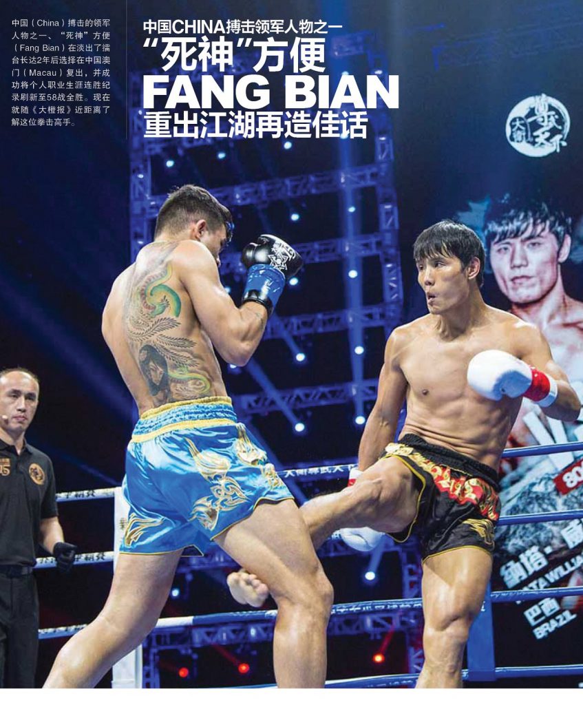 中国(China)搏击的领军人物之一、“死神”方便(Fang Bian)在淡出了擂台长达2年后选择在中国澳门(Macau)复出,并成功将个人职业生涯连胜纪录刷新至58战全胜。现在就随《大橙报》近距离了解这位拳击高手。