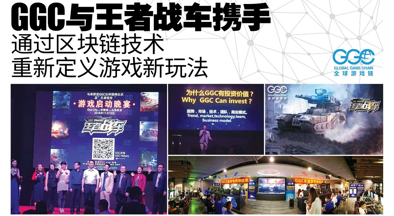 晚宴上GGC宣布了世界首款大型区块链电竞游戏《王者战车》在马来西亚正式上线,并在全马来西亚超过一千家网咖进行推广,这是GGC全球游戏链应用落地,走向世界,直接面对用户的第一步,也是区块链大型竞技游戏从零到一的重大突破。