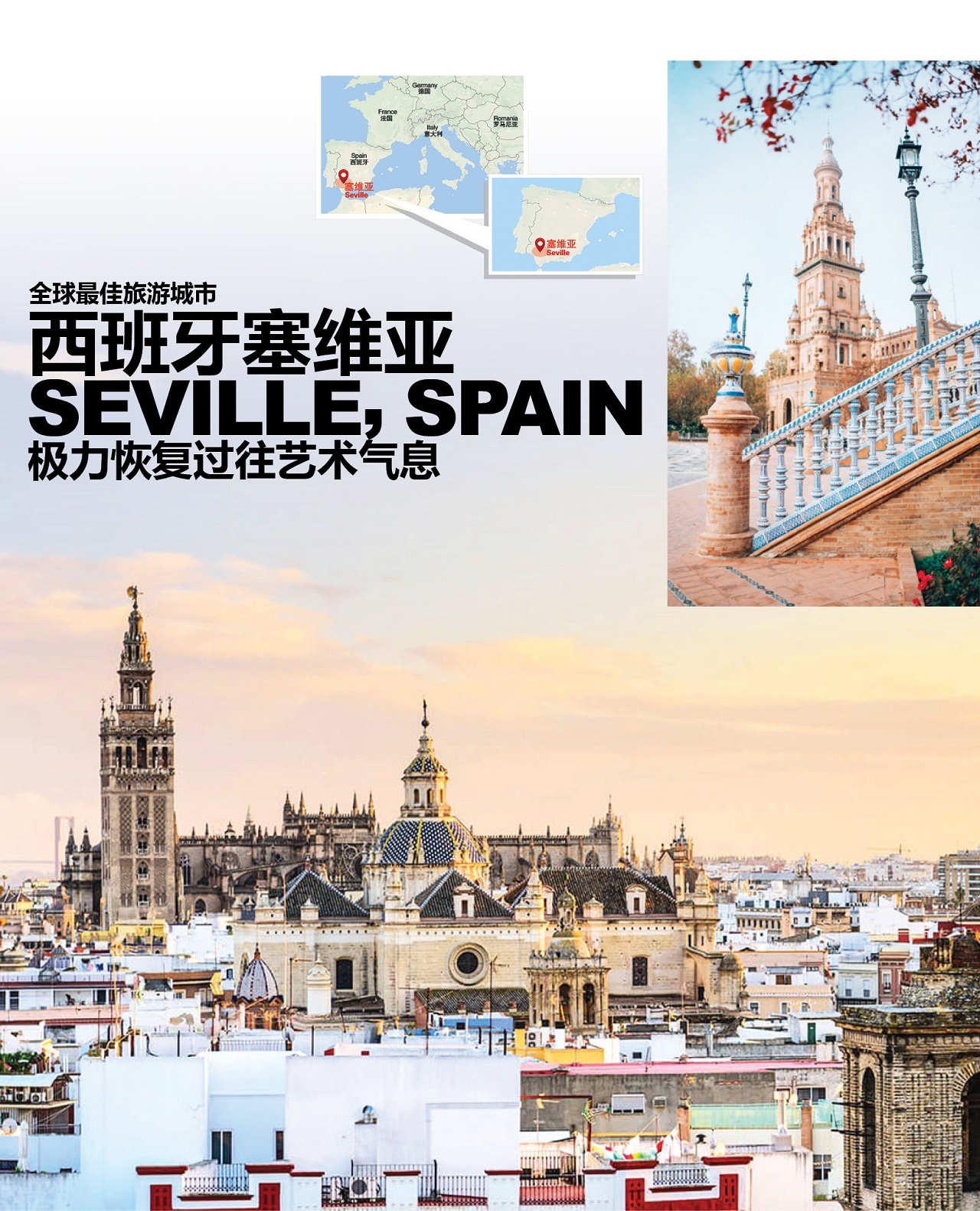 《孤独星球》指出,塞维亚曾是交通拥挤的都会,但现已发展成一座单车和电车之都。目前,还正极力恢复它过往的艺术气息。同时,为庆祝塞维亚之光–巴洛克时期的画家牟利罗(Bartolome Esteban Murillo,1617年12月31日出生)400岁冥诞,塞维亚举行多项庆祝活动,活动也会延续至明年。