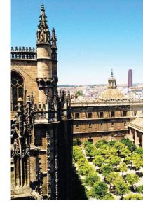 吉拉尔达塔也是塞维亚大教堂的亮点之一,为当摩尔人统治时建造的清真寺塔楼,高98米,沿着略为陡峭的楼梯登至塔顶可一览塞维亚城风光。
