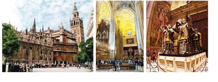 塞维亚大教堂内还存放着哥伦布的灵柩以及其纪念像,由卡斯蒂利亚、莱昂、纳瓦拉、阿拉贡四位国王骑士雕像扛起。