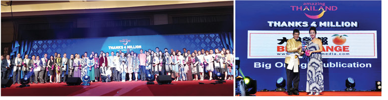 泰国旅游局(TAT)于2019年4月19日在吉隆坡文华东方大酒店(Mandarin Oriental Hotel Kuala Lumpur)举办“Thanks 4 Million – Let’s Celebrate Songkran Festival”大型晚宴,象征泰国于2018年迎接400万名马来西亚旅客前去该国旅游,从中获取1亿1489万6000泰铢或大约1473万令吉营收的重要成就。