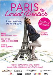 作者–洛朗·多伊奇(Lorànt Deutsch)将其得意之作《地下巴黎:Metronome》以崭新面貌呈现于舞台上——PARIS– A JOURNEY ALONG THE RIVER SEINE(巴黎 – 沿河而行的旅程)于白沙罗表演艺术中心(DPAC)上演其亚洲巡回首映的其中一站。