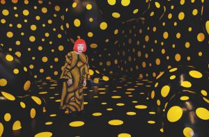 1929年生于日本本土的草间弥生是一个孤独的孩子,在幼年时代她就对现实生活视域中的圆点充满兴趣。镜子,圆点花纹,生物触角和尖端都是草间弥生后来作品中重复出现的主题,她对斑点的迷恋源自幼年患有神经性视听障碍,这场疾病使她看到的世界仿佛隔着一层斑点状的网。