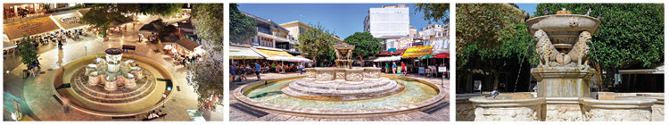 雄狮广场是伊拉克利翁的主要广场之一,于1628年由当时的总督弗朗西斯科·莫罗西尼(Francesco Morosini)主持修建。规模不大,莫罗西尼喷泉(Morosini Lions Fountain)是广场的标志性建筑,水从4只石狮子的口中喷出,落入下面8个雕刻精细的接水槽中。