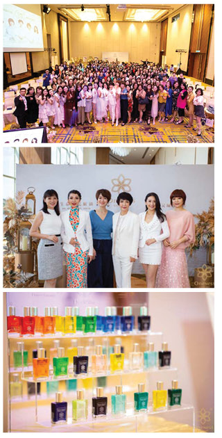 本次大会还有一个重头戏,就是OneNess Concept最新推出的新产品 “光子童颜花霜” 的处女登场秀!由DeekSha彩光波频花晶的 “花晶天使” 韩依芝(Angel Hon)带着新品绕场走秀。