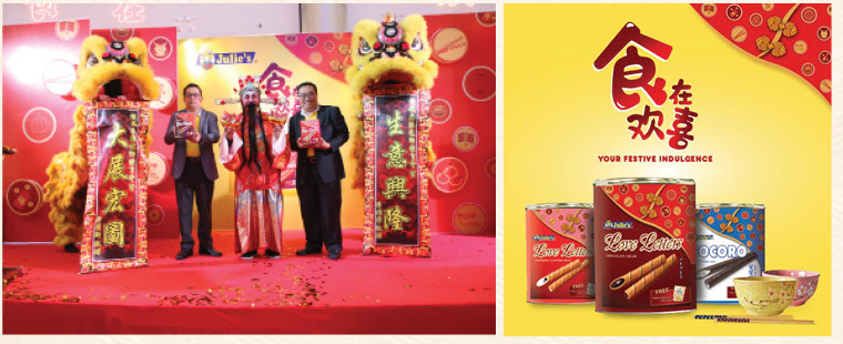 用爱心烘焙的茱莉蛋卷是家家户户购买迎接招待亲朋戚友及送礼的最佳伴手礼,是心意的象征,今年Julie’s 一如既往,全马南下北上丶大城小镇跑透透,散播幸福到每一个角落,而今年新春主题是“食在欢喜”,寓意让大家吃蛋卷时“爱不释手丶停不了口丶吃的开心丶食在欢喜”!