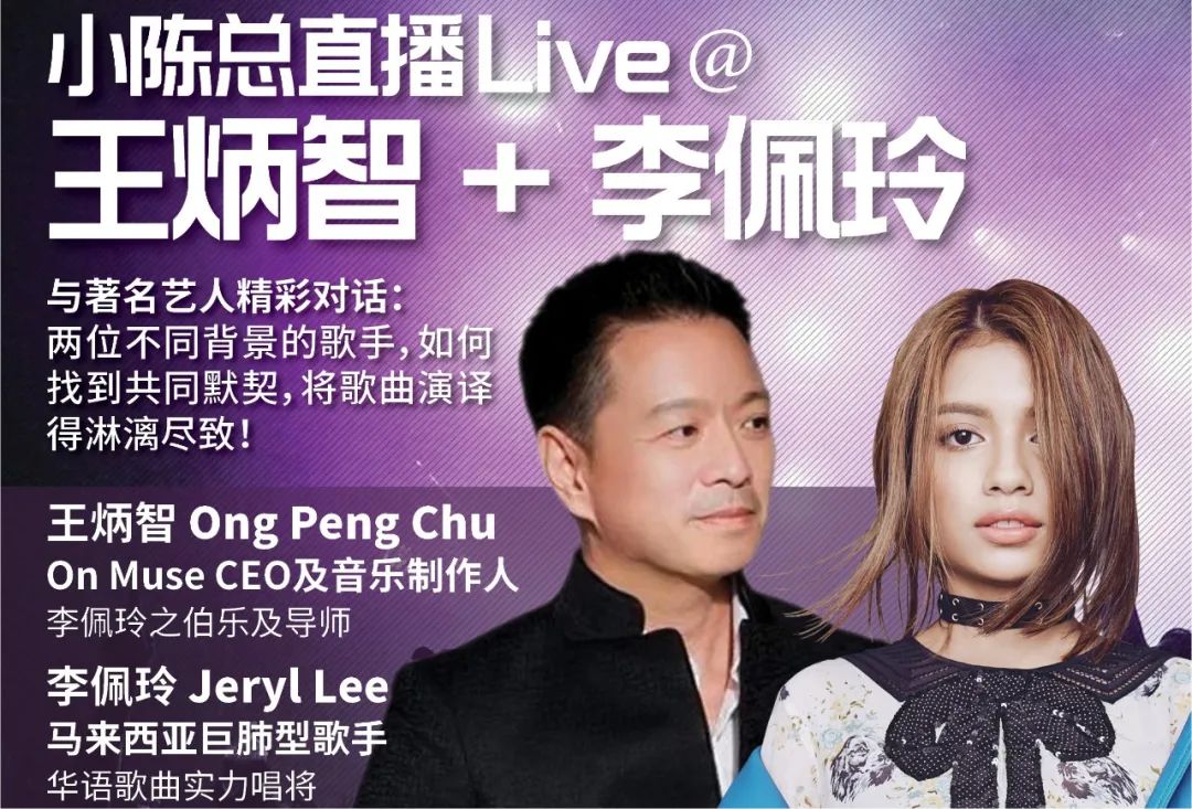 2020年4月24日(星期五)傍晚6点,由云海传媒 / 《VCNews》商报总裁、大橙国际传媒集团总经理、深圳市创新产业促进会副会长、世界华人企业家联合会东盟主席 Veronica Tang 陈学萩 (小陈总) 就“两位不同背景的歌手如何找到共同的默契,将歌曲演绎的淋漓尽致!”为主题对话马来西亚国际资深音乐制作人王炳智、‘中国好声音’(已改名《中国新歌声》) 乐坛新星 Jeryl 李佩玲。
