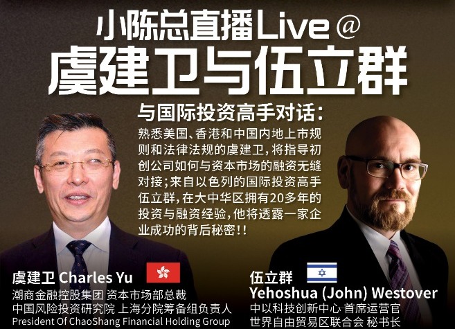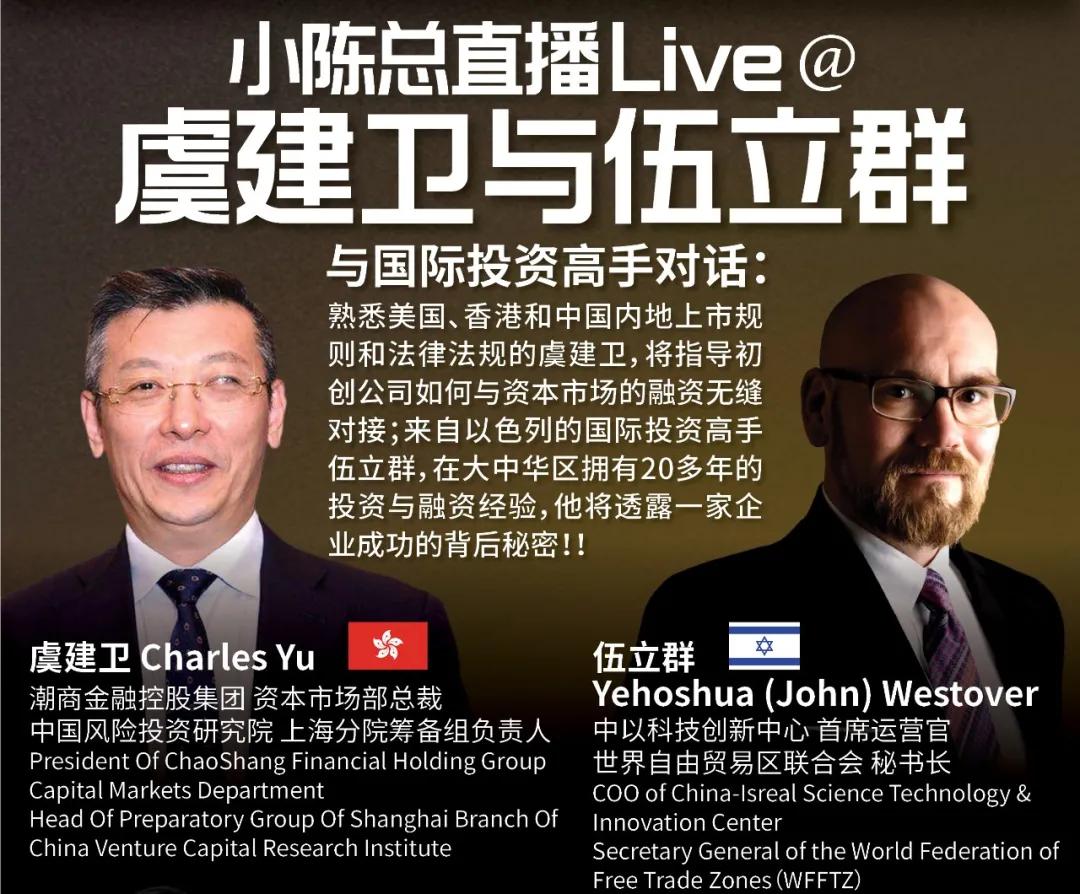 《大橙直播》九月特辑第001、002集我们非常荣幸邀请到投资、项目管理经验丰富熟悉美国、香港、和中国内地上市规则和法律法规的潮商金融控股集团 资本市场部总裁、中国风险投资研究院 上海分院筹备组负责人 Charles Yu 虞建卫以及来自以色列的国际投资高手 中以科技创新中心 首席运营官、世界自由贸易区联合 会秘书长 Yehoshua(John)Westover 伍立群作为我们的大橙直访嘉宾。