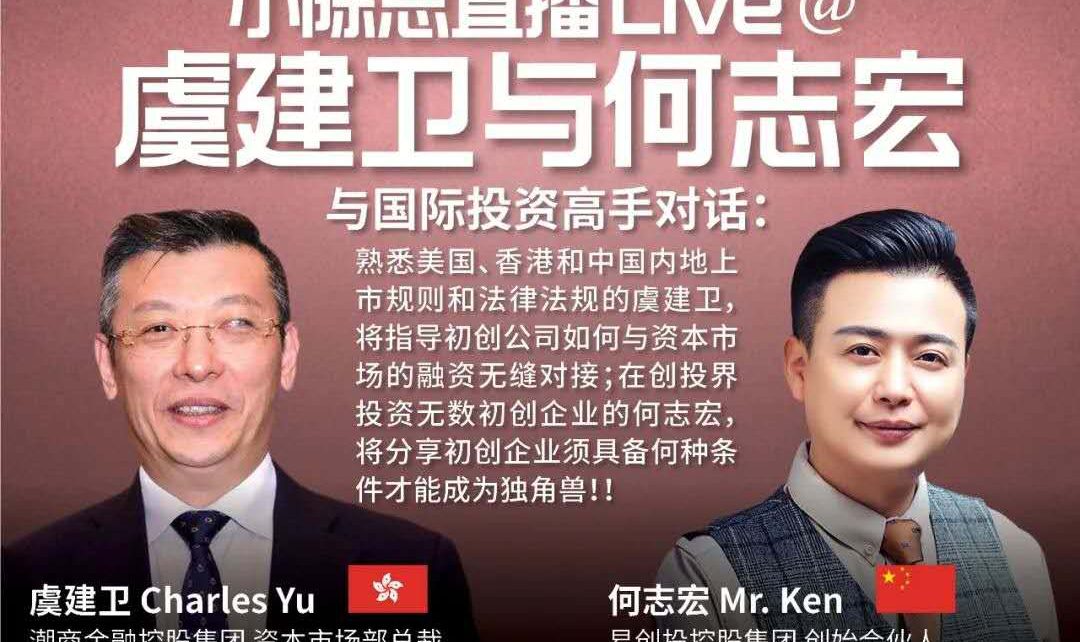《大橙直播》十月特辑第001、002集我们非常荣幸邀请到投资、项目管理经验丰富熟悉美国、香港、和中国内地上市规则和法律法规的潮商金融控股集团资本市场部总裁、中国风险投资研究院上海分院院长 Charles Yu 虞建卫以及创业投资经验丰富的VC大咖易创投控股集团创始合伙人、阿里天使会副会长何志宏 Mr.Ken 作为我们的大橙直播嘉宾。