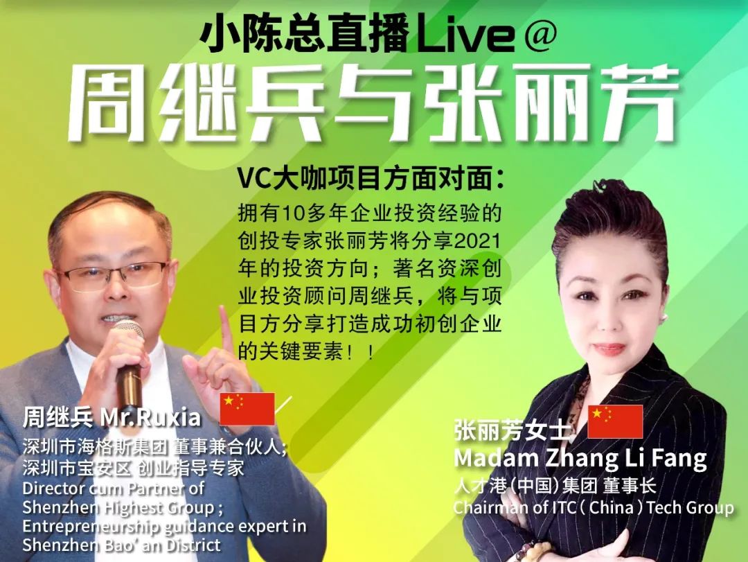《大橙直播》三月份特辑第003集我们非常荣幸邀请到在商场打拼十多年的商场著名女将人才港(中国)集团的董事长张丽芳 Madam Zhang Li Fang 以及著名资深创业投资顾问深圳市海格斯集团 董事兼合伙人、深圳市宝安区 创业指导专家周继兵 Ruxia 作为我们的大橙直播嘉宾。