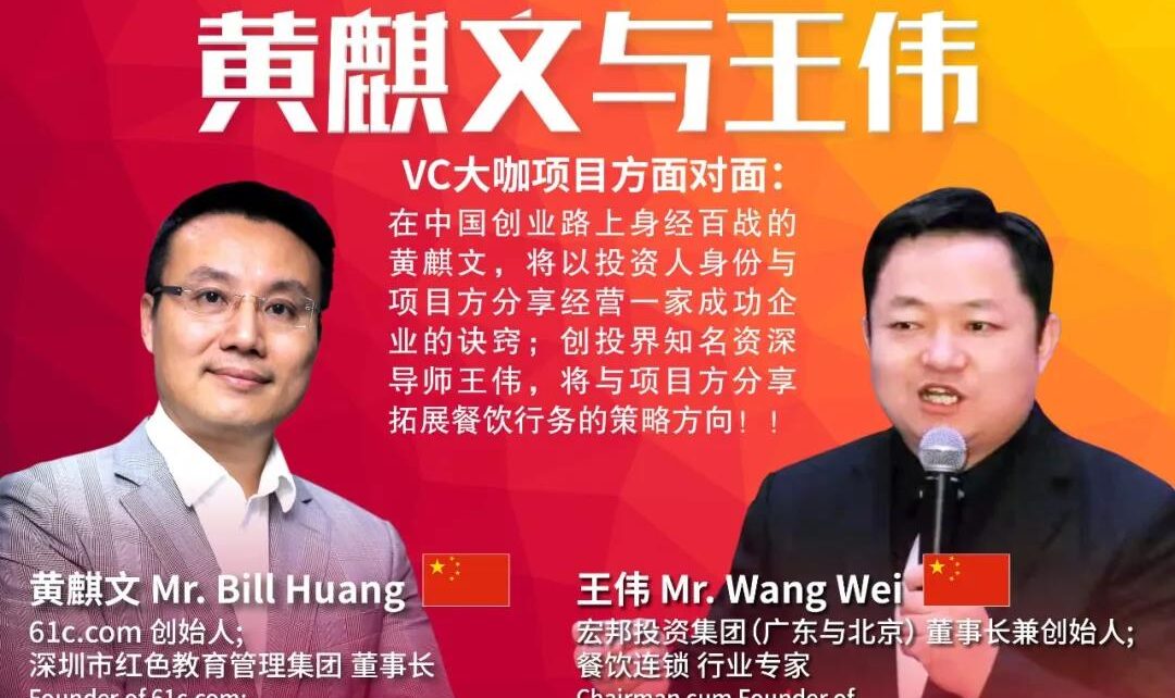 《大橙直播》四月份特辑第003集我们非常荣幸邀请到在中国创业路上身经百战,经验丰富的61C.com创始人、深圳市红色教育管理集团 董事长黄麒文 Mr.Bill Huang 以及创投界资深导师餐饮连锁 行业专家、宏邦投资集团(广东与北京)董事长兼创始人王伟 Mr.Wang Wei 作为我们的大橙直播嘉宾。
