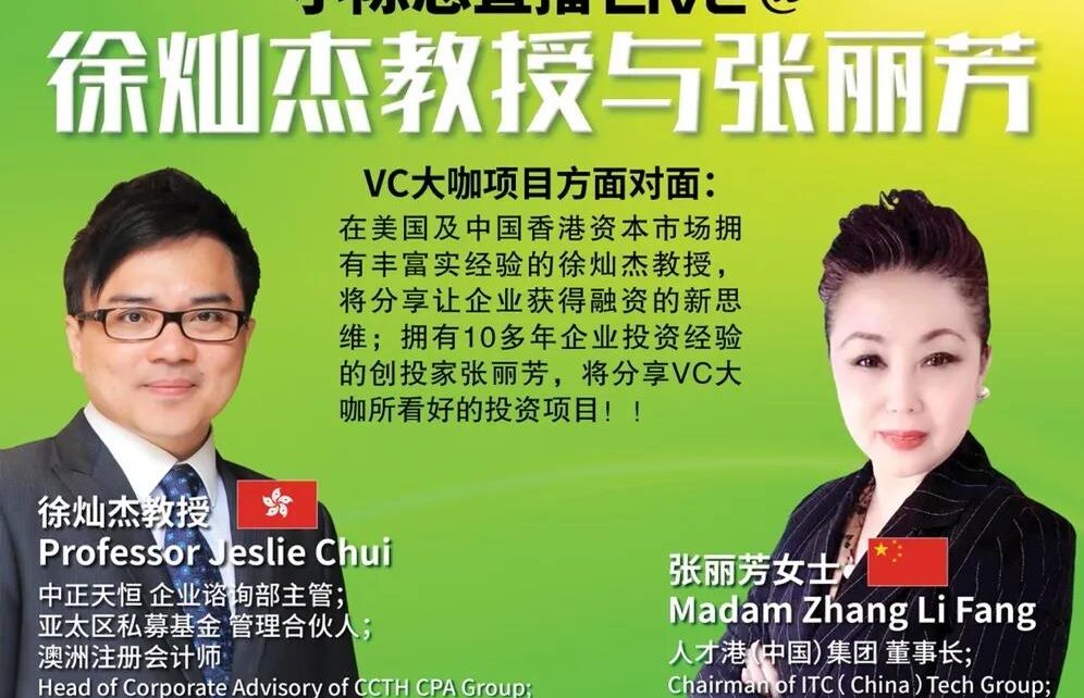 《大橙直播》八月份特辑第003集我们非常荣幸邀请到在美国及中国香港资本市场拥有丰富经验的亚太区私募基金管理合伙人、中中正天恒企业咨询部主管、澳洲注册会计师徐灿杰教授 Professor Jeslie Chui 以及在商场打拼十多年的商场著名女将人才港(中国)集团的董事长张丽芳 Madam Zhang Li Fang 作为我们的大橙直播嘉宾。