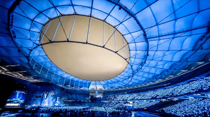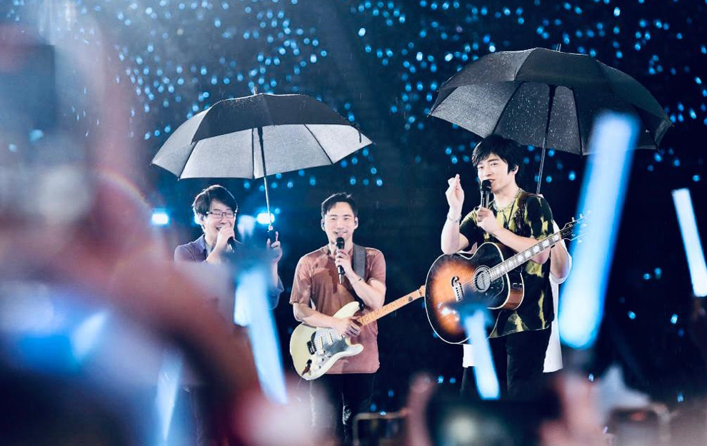 演唱会场地中央的延申舞台,在不同的灯光呈现下,格外亮眼,也让五月天可以与粉丝们更贴近距离。