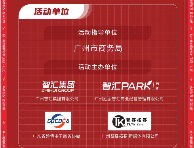 随着直播电商行业的蓬勃发展,为了推动传统商贸业的数字化转型,助力贸易企业开辟外贸新蓝海,广州市商务局指导下,智汇PARK园区将于4月21日联合广东省跨境电商协会、广州替客拓客新媒体有限公司、马来西亚大橙传媒等优质服务商企业,共同举办“广州第三届直播电商节(中国·广州)时尚品类跨境电商专场”。