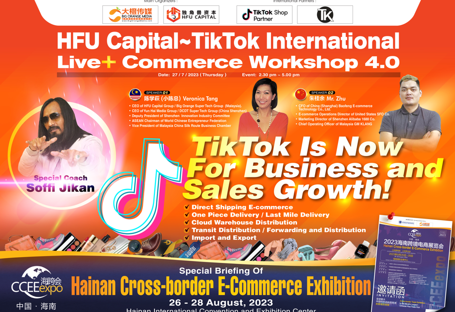大橙传媒(Big Orange Media)和独角兽资本(HFU Capital)于7月27日(星期四)联合举办“独角兽资本-Tik Tok国际直播+商务研讨会4.0”,以及“2023海南跨境电商展览会”汇报会。