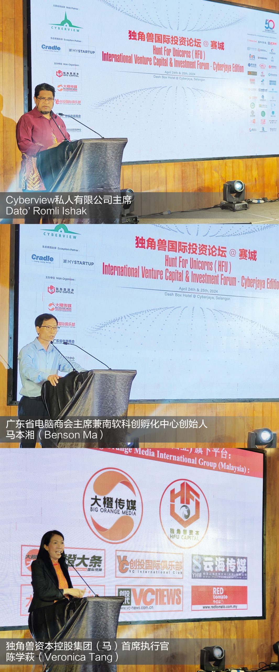 当晚星光熠熠,出席嘉宾包括Cyberview私人有限公司主席Dato’ Romli Ishak、Cyberview私人有限公司首席执行官(CEO)Kamarul Ariffin Abdul Samad、广东省电脑商会主席兼南软科创孵化中心创始人马本湘、独角兽资本控股集团 (马)首席执行官陈学萩(Veronica Tang)、米享科技董事长兼中国小米天使投资人毛建伟、深圳市与君创业投资管理有限公司合伙人及深圳市与君科创管理有限公喜联合创始人兼CEO朱慧芬等。