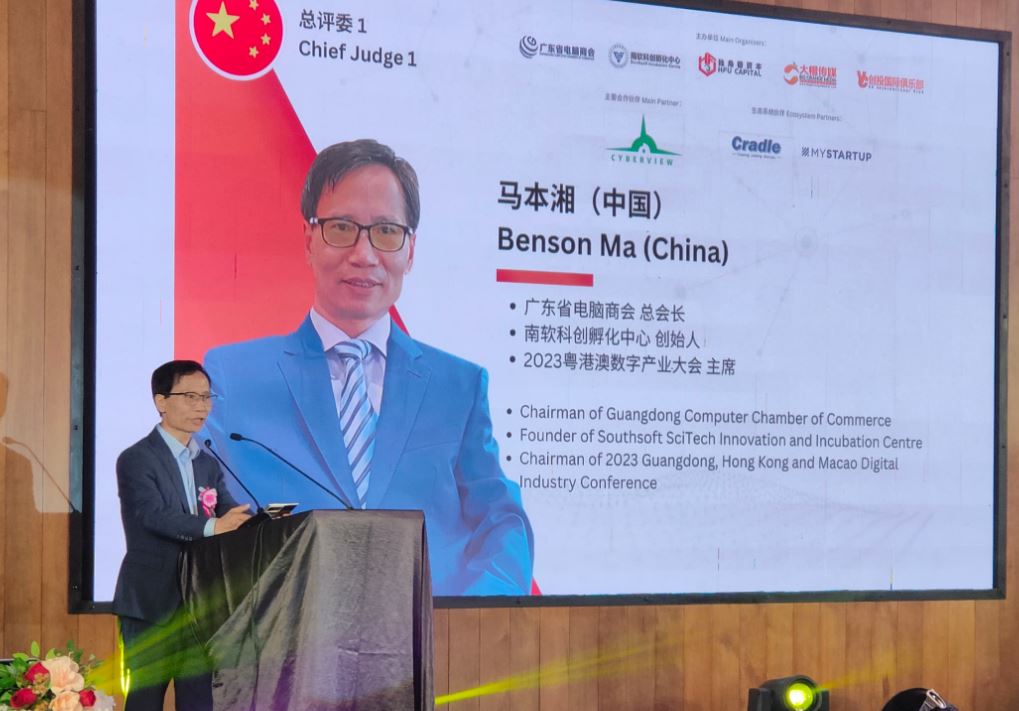 第一天活动会是位于赛城(Cyberjaya)的Dash Box Hotel会议厅举行,于早上8点嘉宾们纷纷登记进场,为这场盛事做好准备。随后,激动人心的时刻到来,早上10点,马来西亚和中国国歌分别响起,全体嘉宾肃立,迎接着这场重要的会议正式开始。广东省电脑商会主席兼南软科创孵化中心创始人马本湘(Benson Ma)首先发表致辞,他不仅是这次大会的主评委,还向投资人和项目方阐明了两天活动的评分规则和路演规则,为活动的顺利开展奠定了基础。此外,Cyberview Sdn Bhd首席執行官Kamarul Ariffin Abdul Samad也上台发表重要演说。