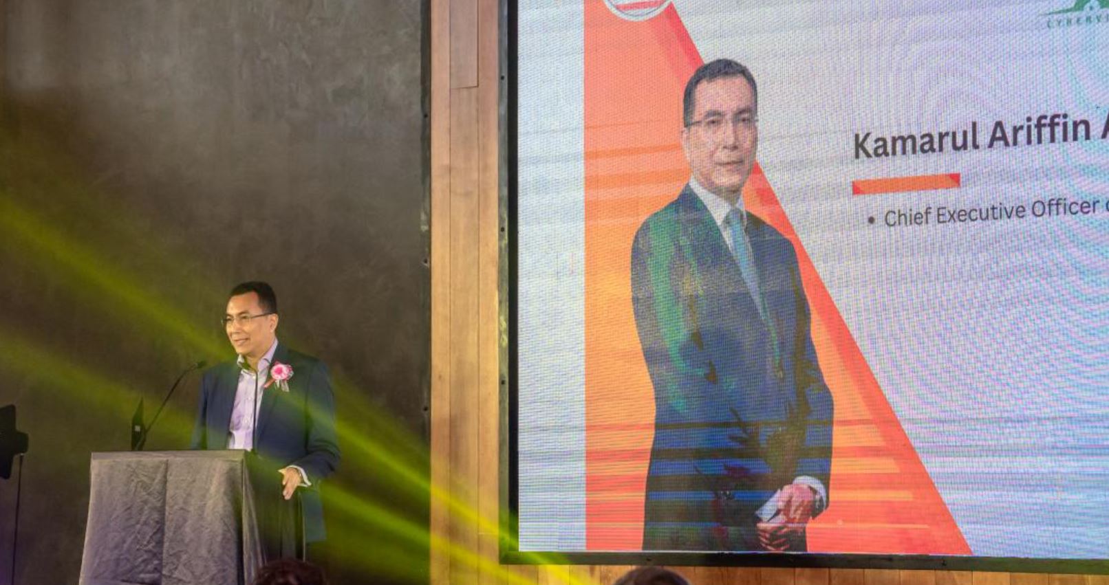 接着,独角兽资本控股集团(马)兼大橙传媒国际集团(马来西亚)首席执行官陈学萩(小陈总)登台致辞,分享了主办方的信息,并播放了VC News简介视频和宣传视频。作为活动的合作伙伴,Cyberview Sdn Bhd科技中心发展部创新及行业发展主任洪嘉兴上台介绍了公司在活动中的角色。Cyberview公司被马来西亚政府授权带头发展赛城,致力于将赛城打造成为全球科技枢纽的重要节点,为科技创新提供了坚实的支撑。Cradel Fund Sdn Bhd策略行销及区域发展资深经理Nurshaffira Shaffiq Izzad也上台简介了公司业务及发展。