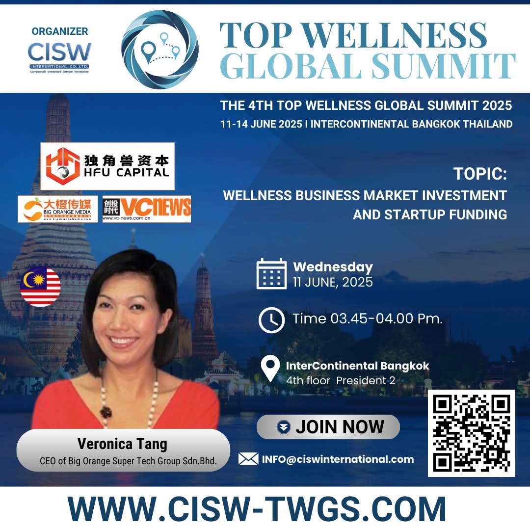 由CHG集团和CISW公司联合主办的“第四届全球顶尖健康峰会”(Top Wellness Global Summit, TWGS 2025)即将于2025年6月11日至14日在泰国曼谷盛大举行。此次峰会将汇聚来自全球50多个国家的顶尖行业领袖、专家学者及健康领域的专业人士,围绕“塑造全球健康、长寿与抗衰老未来:携手创新共进”的主题,共同探讨全球健康与长寿领域的前沿议题。
