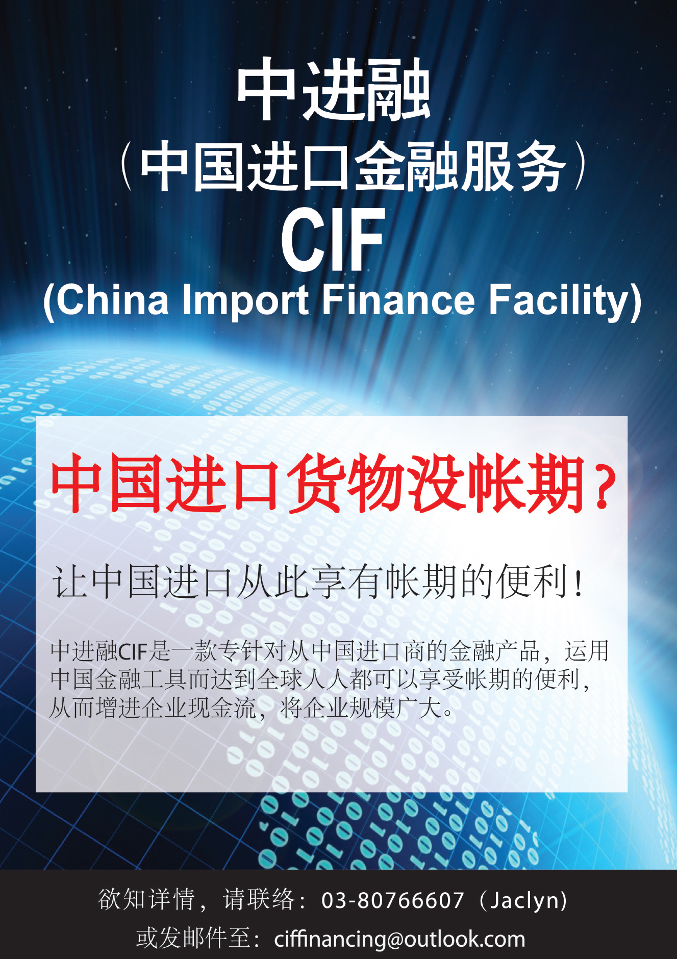 广告资讯 广告资讯(full) CIF(China Import Finance Facility) admin 12 years ago (Last updated: 12 years ago) 0 comments Post Views: 49,525 Post navigation Previous: 马来西亚第二家园计划 (Malaysia My Second Home programme) 成功吸引外国人定居马来西亚Next: 为了逃避过重税务负担 一年有上千人“告别美国” Related Stories 广告资讯 SUJATA NANDY Awakening The Divine Feminine Facilitator Certification Programme BO Admin 5 years ago 0 广告资讯 Baskin-Robbins X Tom Abang Saufi联乘“趣乐包” 开斋佳节最佳伴手礼 BO Admin 5 years ago 0 广告资讯 Dennis Lau & Friends ‘The Chosen’ Concert 2019 BO Admin 5 years ago 0