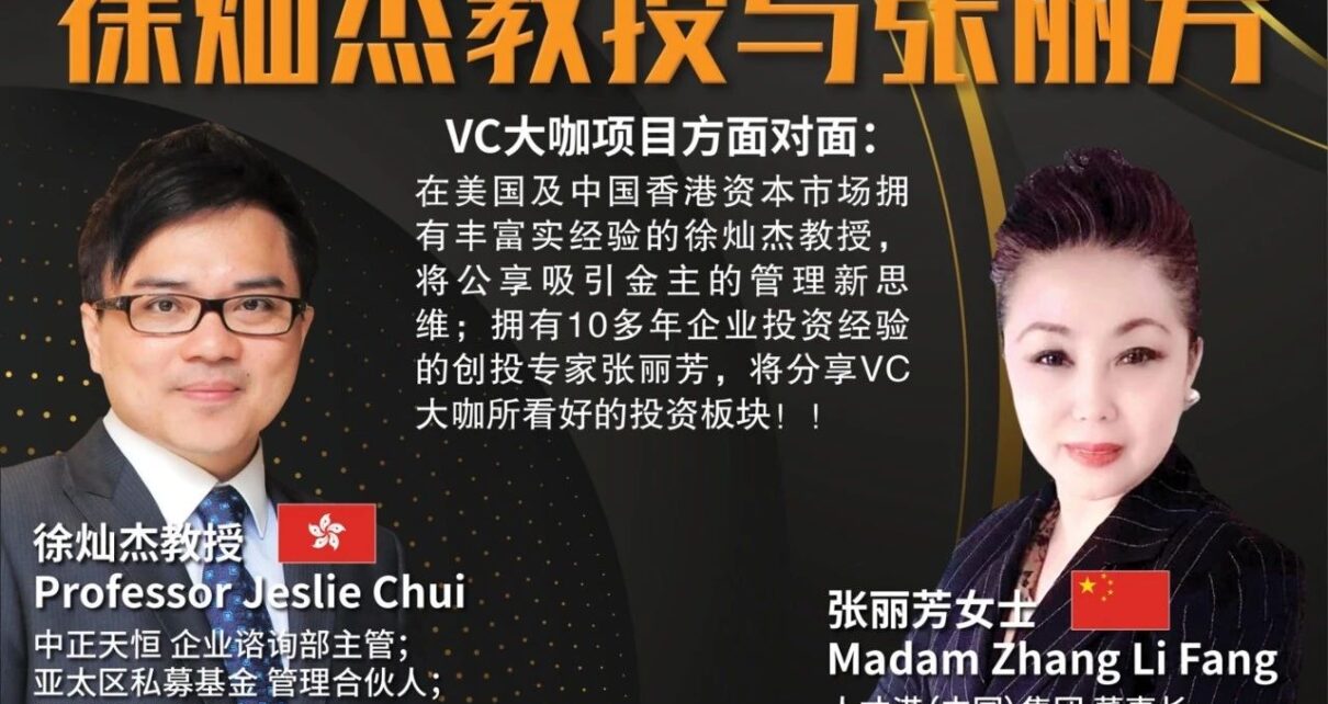 Post Views: 7,512 当今市场上企业之间的竞争已经进入白热化阶段,尤其是各大企业投资趋势的不断加强,加剧了行业的变革,内外因素决定了企业必须做出转变。那么对于企业家来说,应该如何找准投资板块,拓展利润渠道,从而实现利益的最大化呢?如何在投资策略上下功夫,从而开辟出更为广阔的利润市场呢? 《大橙直播》七月份特辑第004集我们非常荣幸邀请到在美国及中国香港资本市场拥有丰富经验的亚太区私募基金管理合伙人、中中正天恒企业咨询部主管、澳洲注册会计师徐灿杰教授 Professor Jeslie Chui 以及在商场打拼十多年的商场著名女将人才港(中国)集团的董事长张丽芳 Madam Zhang Li Fang 作为我们的大橙直播嘉宾。 徐灿杰教授 Professor Jeslie Chui现为CCTH CPA企业咨询服务部主管,负责协调亚太区资本市场策略及规划!他也是资深私募基金合伙人,投资在不同的行业板块,项目涉及:医疗科技,大湾区网上教育,威士忌,新能源….等等!! 历任:美国私募基金:美富诺资本首席市务总监及亚太区主管,中泰国际首席策略总监、中国银河国际财富管理行政总裁、中银(香港)衍生工具部市务主管,以及新鸿基金融集团(现名为光大新鸿基)分销主管!同时为香港上市公司独立非执行董事(INED)!负责上市公司审核,内控、风控及投资委员会事宜! Prof...