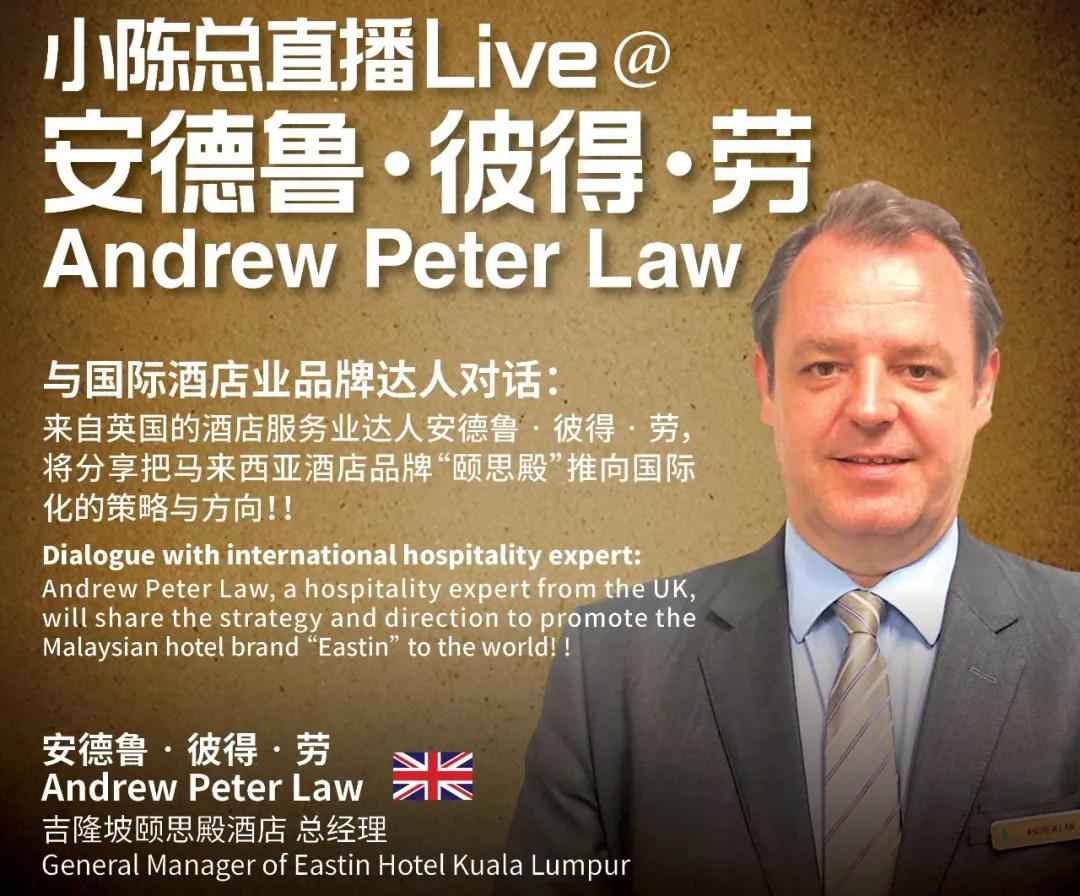 Post Views: 3,030 随着全球经济化的发展,各国之间的贸易往来逐渐频繁,国家亦通过开展友好城市交往、提高国际便利化、丝绸之路等进程,不断推进国际往来,这对酒店行业来说是巨大的商机,为推进酒店行业迈向国际市场做下了良好的铺垫。要把酒店行业迈向国际市场,企业家更应当定位好自身酒店的优势与特色,树立好酒店品牌,对于我们自身而言,无论是出差还是旅游度假,酒店都是我们外出规划的重中之重。在挑选酒店时,体验感是选择酒店的关键因素,也是酒店建设者们考虑的“重头戏”。那么企业家该如何打造自身酒店的品牌特色?如何通过塑造酒店价值为客户提供更加个性化的体验?如何做好酒店企业文化建设,营造良好的酒店氛围?如何做好酒店的营销推广,从而迈向更大的国际市场呢? 7月24日(星期五)傍晚五点,《大橙直播》邀您与国际酒店业品牌达人安德鲁·彼得·劳一起,分享打造酒店品牌的诀窍以及如何将酒店推向国际化市场! 《大橙直播》第三季第009集我们非常荣幸邀请到来自英国的酒店服务业达人吉隆坡颐思殿酒店 总经理安德鲁·彼得·劳 Andrew Peter Law 作为我们的大橙直访的分享嘉宾。 热情好客并充满幽默感的吉隆坡颐思殿酒店总经理安德鲁·彼得·劳(Andrew Peter Law)的辛劳和毅力为他累积了30年的国际酒店管理经验。身为总经理的他涉足了酒店的所有领域,包括员工的未来发展,产品改进,财务业绩,盈利管理,品牌合规性和客服满意度。 他的职业生涯足迹包括了英国,中国,埃及和马来西亚的各种知名连锁酒店。当年15岁的他从事酒店业的第一份工作是宴会服务员。由于常年接触各项酒店活动使他对餐饮运营产生了热情。 Law于2005年加入中国南京希尔顿酒店及渡假酒店并担任餐饮部经理,进一步提升了他的酒店事业。除此之外,他也参与了埃及沙姆沙伊赫酒店的扩建策划。Law在2009年来到马来西亚砂拉越古晋Merdeka Palace...